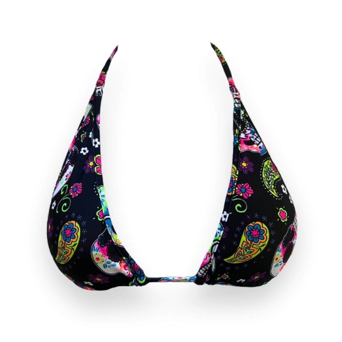 - Nuestro top clásico de triángulo ofrece la máxima cobertura para tallas grandes de pecho y cuenta con lazos ajustables en cintura y cuello. Nuestro top clásico ofrece una cobertura más discreta para una cobertura más normal.