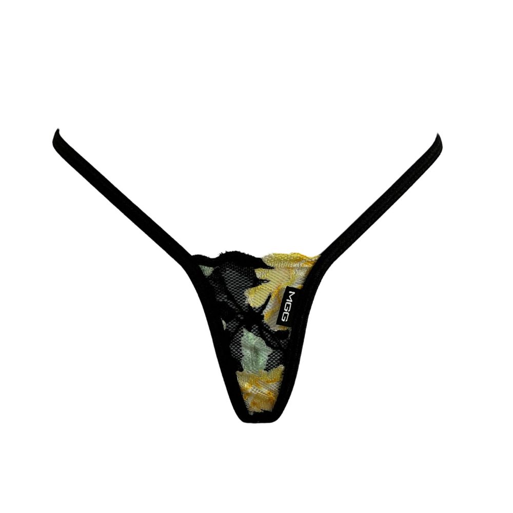 - Nos strings Ultra Lace offrent une couvrance minimale, avec une largeur de 5 cm, et sont ornés d'un joli petit triangle en dentelle à l'arrière.