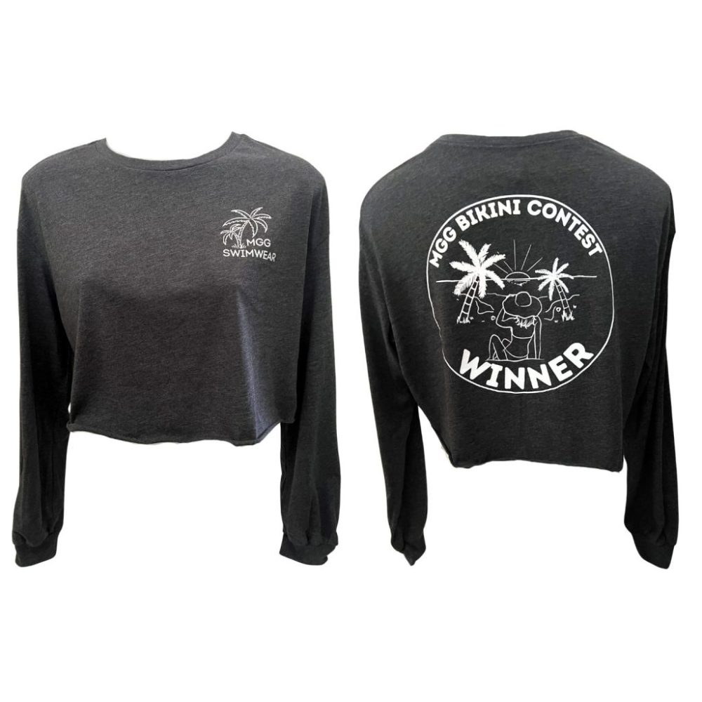 Dark Gray Bikini Winner Long Sleeve Crop Top