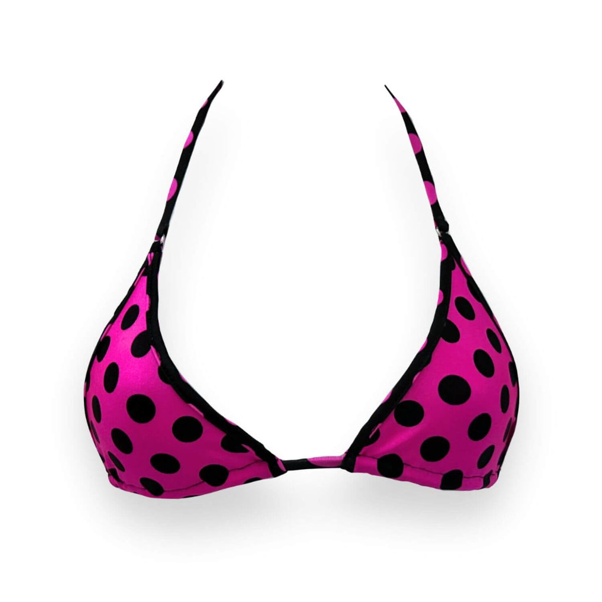 The Mini triangle-top has moderate coverage, while still keeping it micro for minimal tan lines. The Mini Top does offer slightly more coverage than the Nano Top to accommodate all chest sizes and features adjustable tie waist and neck ties.