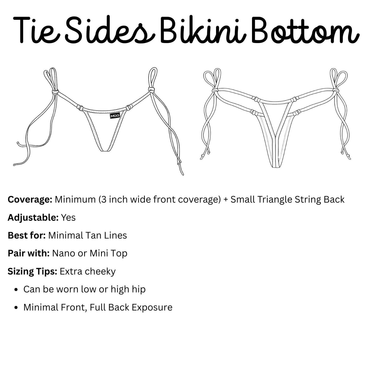 - Tie Sides bottoms offer minimal front coverage that features a cute small triangle back for full cheeky exposure.